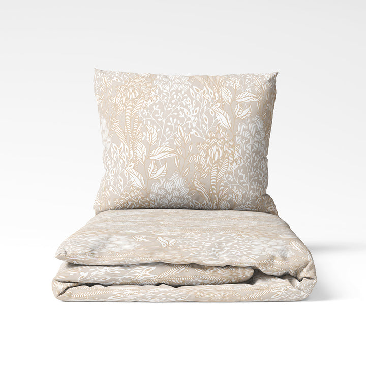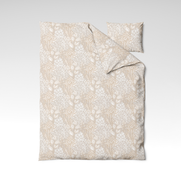 🌾 Sand Meadow - warm and cozy design where subtle botanical patterns unfold against a sand-colored background. White leaf and herb motifs create a sense of calm, naturalness, and cleanliness. It's a perfect choice for those who want to bring warmth, harmony, and minimalist elegance to their bedroom.