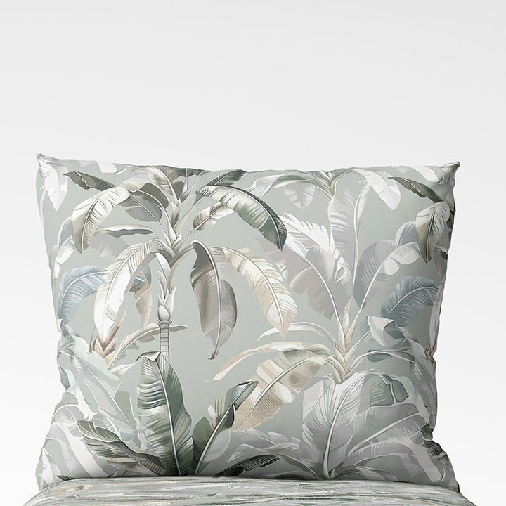🌿 Tropical Sage – lengvas ir švelnus pagalvės užvalkalas su tropiniais lapais. Jo pastelinės žalumos tonai suteikia jaukumo ir natūralumo, o subtilus raštas sukuria atpalaiduojančią nuotaiką.