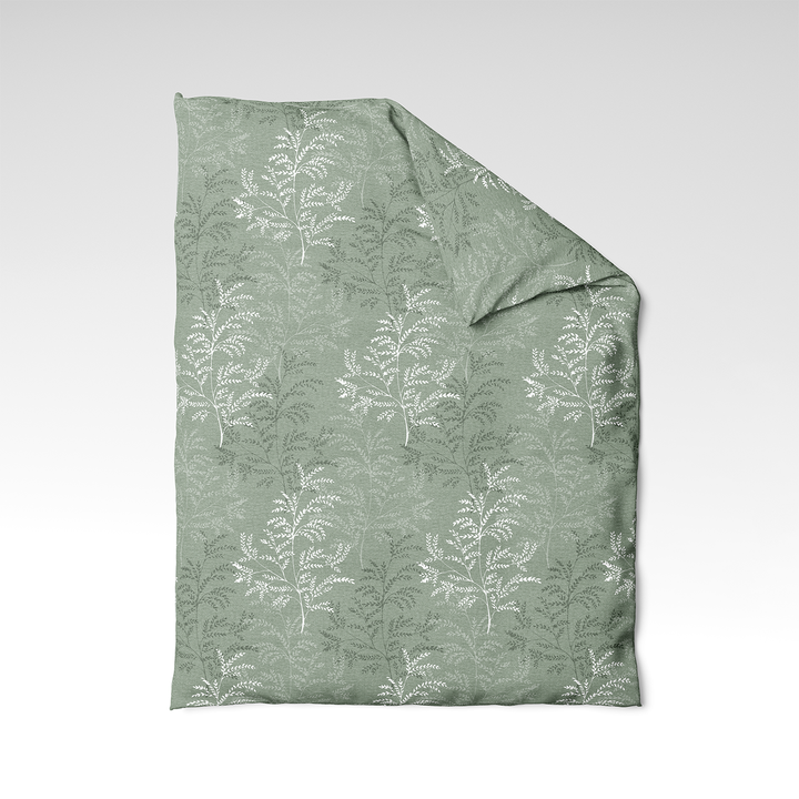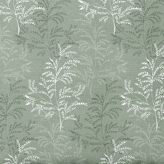 Sage Fern – tas ir līdzsvarots dizains, kurā maigi zaļš fons harmoniski saplūst ar elegantiem baltiem papardes siluetiem. Augu motīvi rada dabiskuma un miera sajūtu, atgādinot agru rītu dabā. Piemērots tiem, kas meklē vieglumu, tīrību un subtilu stilu guļamistabā.