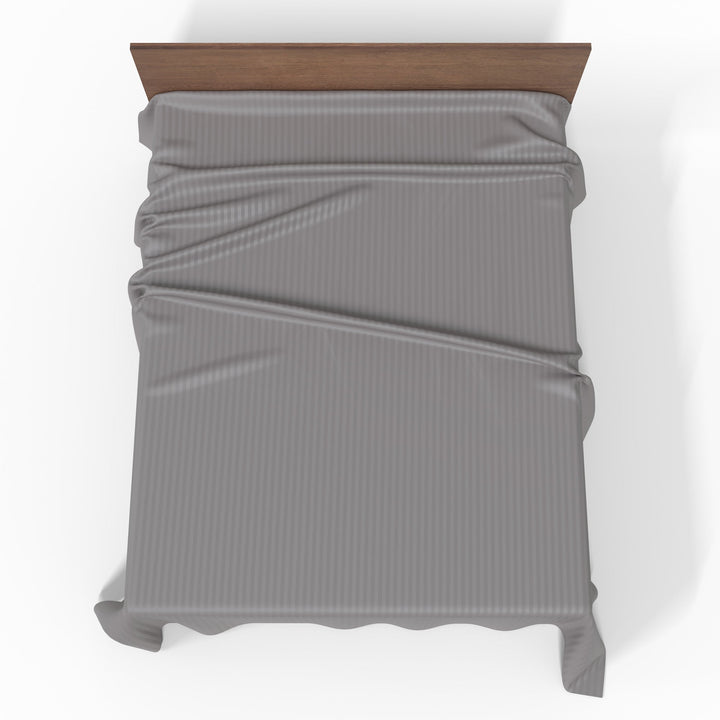 Rankų darbo prabangi Premium juostuoto satino medvilninė paklodė be gumos | Wisdom Gray