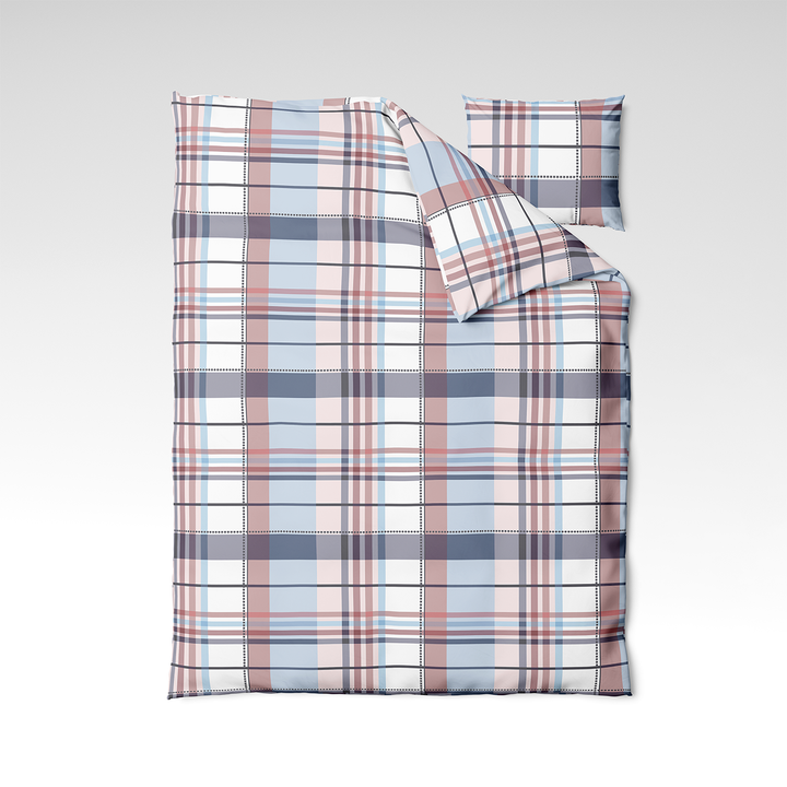 🩷 Румянец Тартан - современная и уютная ткань с классическим клетчатым узором тартана. Розовые, синие и белые оттенки создают светлое, игривое и сбалансированное впечатление. Подходит для тех, кто ищет свежее, но остающееся стильное решение.